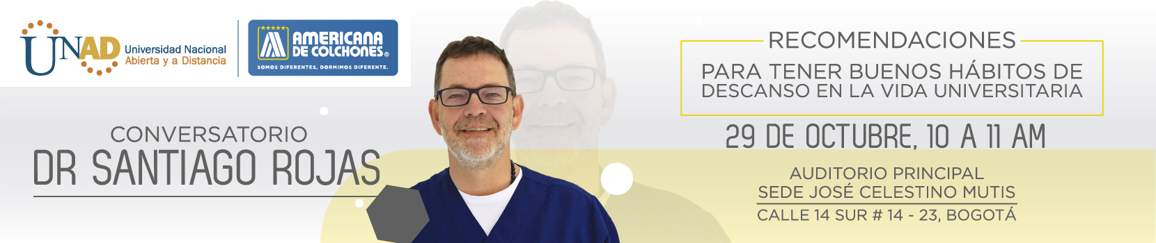 El proyecto de Bienestar Integral Unadista, liderado por la Vicerrectoría de Servicios a Aspirantes, Estudiantes y Egresados - VISAE - ha logrado la presencia en la UNAD del Doctor Santiago Rojas, médico especialista en cuidados paliativos oncológicos y en terapias complementarias, conferencista sobre crecimiento personal, terapias alternativas, estilo de vida sana y realizador de Sanamente, su popular programa en Caracol Radio.