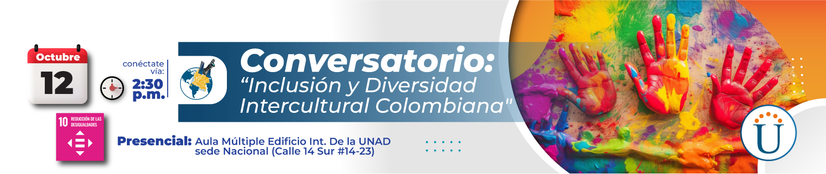 La Vicerrectoría de Inclusión Social, Desarrollo Regional y Proyección Comunitaria de la Universidad Nacional Abierta ya Distancia (UNAD) se complace en anunciar un evento de gran relevancia: el Conversatorio "Inclusión y Diversidad Intercultural Colombiana".