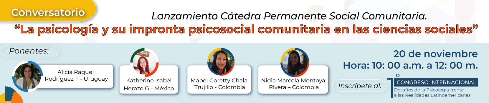 El objetivo general es el lanzamiento de la catedra permanente social comunitaria. Puntualmente el conversatio busca reflexionar sobre el papel de la psicología como ciencia social y las implicaciones de una impronta social comunitaria en nuestra América