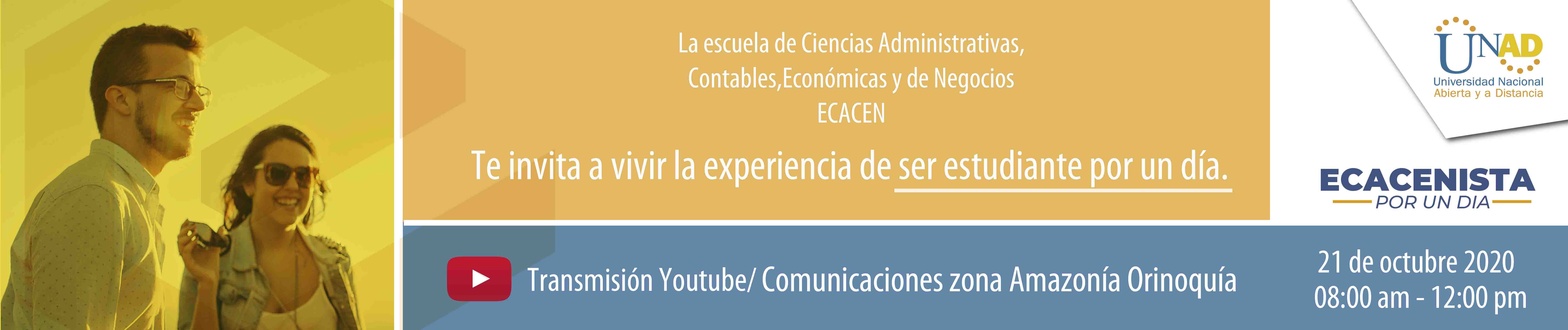 Generar espacios de diálogo interinstitucionales con centros educativos de educación media y tecnológica, empresas regionales, mediante el desarrollo de conferencias, talleres y oferta ´de programas del área administrativa, contable y económica, como fortalecimiento de la articulación y compromiso de la UNAD, desde la Escuela de Ciencias Administrativas Contables Económicas y de Negocios - ECACEN, en la Zona Amazonia Orinoquía, frente a desafíos Glocales.