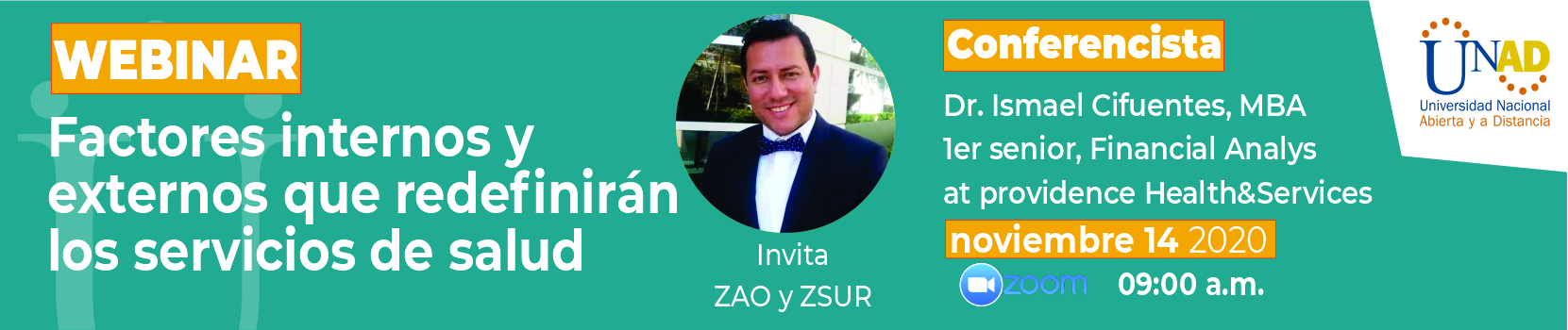 la escuela de ciencias de la salud, a traves del programa de Admnistracion en salud , ha programado un webinar liderado por la zona ZAO y la zona ZSUR