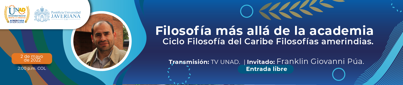 Con motivo del desarrollo del Ciclo académico denominado Filosofía del Caribe del programa Filosofía más allá de la academia de la Licenciatura en Filosofía de la UNAD y su propósito de divulgación se convoca a la comunidad universitaria a una charla con el doctor Franklin Giovanni Púa Mora de la Universidad San Buenaventura.