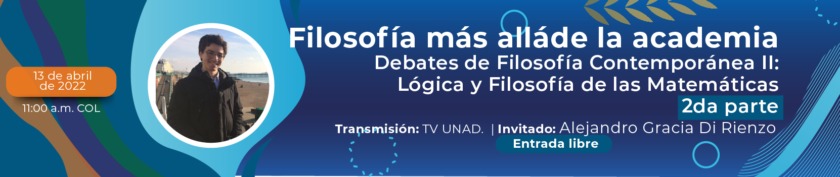Con motivo de dar cumplimiento con los programas de Filosofía más allá de la Academia del PIE 071 de la Licenciatura en Filosofía de la UNAD y su propósito de divulgación se convoca a la comunidad universitaria a la Lección Inaugural como una exposición pedagógica que da apertura a este período académico con el propósito de promover el análisis, el debate y la reflexión filosófica. Es por ello que, se ha convocado al prof. Alejandro Gracia Di Rienzo Filósofo y Magíster en epistemología. Actualmente realiza tesis de doctorado en la Universidad de Santiago de Compostela sobre Sobre los fundamentos de la medición en la ciencia; en otros términos, sobre la naturaleza de las propiedades cuantitativas y el problema de cómo explicar la aplicabilidad de las matemáticas al mundo empírico (tomando la medición como caso paradigmático).