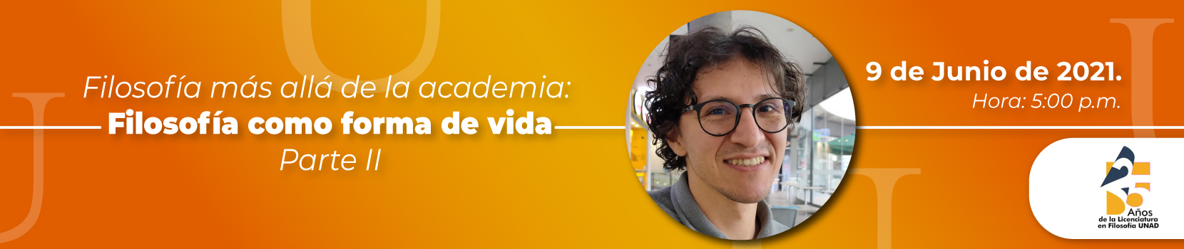 Con motivo de la conmemoración y celebración de los 25 años de la Licenciatura en Filosofía de la UNAD, así como los proyectos de divulgación del Semillero de Investigación INEDUC -adscrito al grupo AMECI- y del PIE 035 del grupo de investigación GUIC , este evento tiene como objeto invitar al profesor Alejandro Farieta a impartir una conferencia académica en la que se resalta su trabajo en temas relacionados con la filosofía como forma de vida