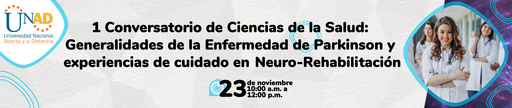 Realizar el primer Conversatorio de Ciencias de la Salud: Generalidades de la Enfermedad de Parkinson y experiencias de cuidado en Neurorehabilitación, a través de la socialización virtual de resultados de investigación y revisiones de la literatura científica, para generar una cultura de autocuidado que permita minimizar el impacto de la misma en nuestra familia, comunidad en general y Unadista