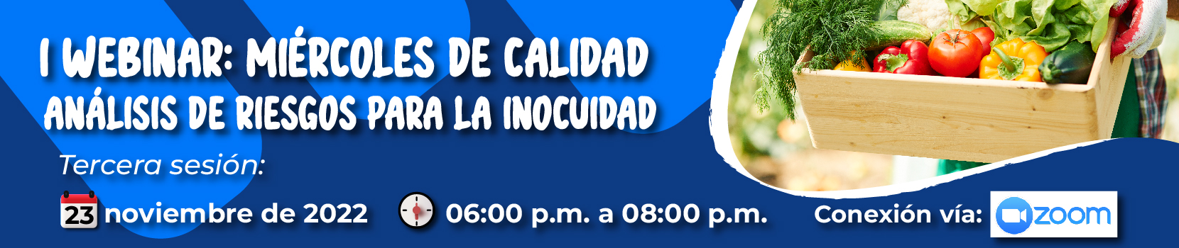 El Webinar Análisis de Riesgos para la inocuidad, es un evento académico, investigativo y de emprendimiento que surge de la voluntad de los docentes de la Red curricular de Seguridad Alimentaria y Nutricional, docentes del Semillero de Investigación en Ciencia, Ingeniería y Tecnología de Alimentos “CITECAL” y del Semillero VITAL ”, para motivar la participación de la comunidad Unadista y sector externo vinculado y/o interesado en temas de formación y actualización fomentando espacios de interacción entre estudiantes, docentes, investigadores e industriales, a través del desarrollo de diferentes talleres