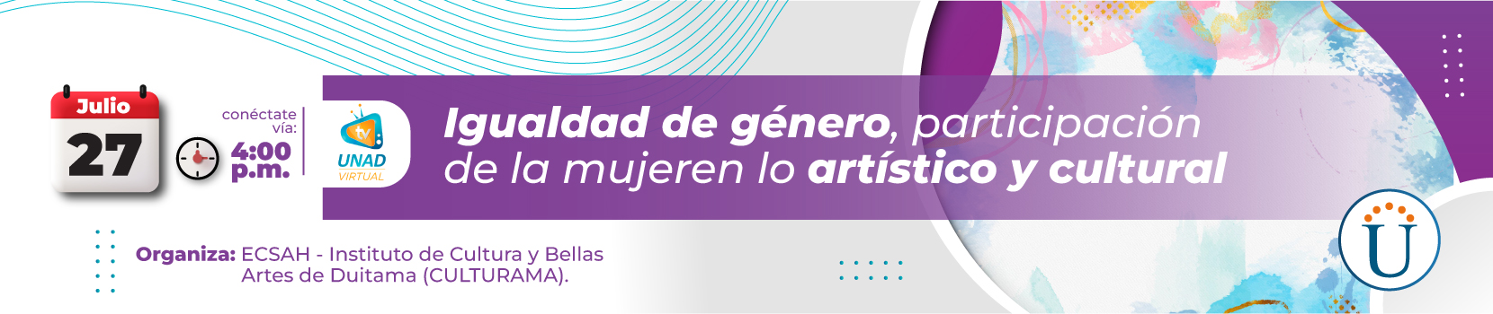 Promover espacios de aporte a los Objetivo de Desarrollo Sostenible (ODS) de Igualdad de Género, mediante un conversatorio sobre la Participación de la Mujer en lo Artístico y Cultural, con la participación de la Escuela de Ciencias Sociales (ECSAH) de la UNAD en Zona Centro Boyacá, y en alianza con el Instituto de Cultura y Bellas Artes de Duitama (CULTURAMA)