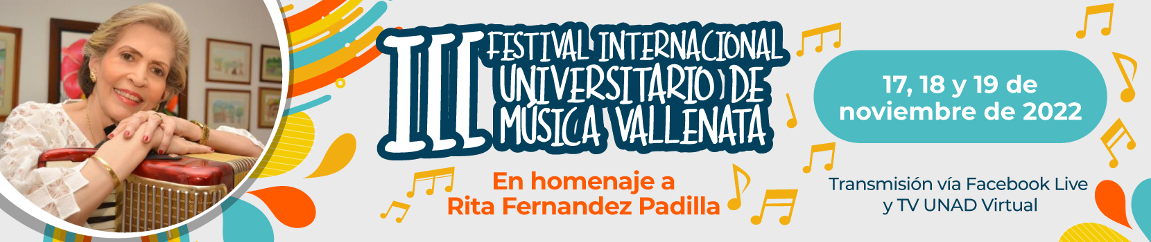 Septiembre de 2022. La Universidad Nacional, Abierta y a Distancia, UNAD, abrió las inscripciones para los interesados en participar en el Tercer Festival Internacional Universitario de la Música Vallenata, a desarrollar del 17 al 19 de noviembre de 2022 y en homenaje a la maestra de la composición vallenata Rita Fernández Padilla, actual Presidenta del Consejo Directivo de Sayco.