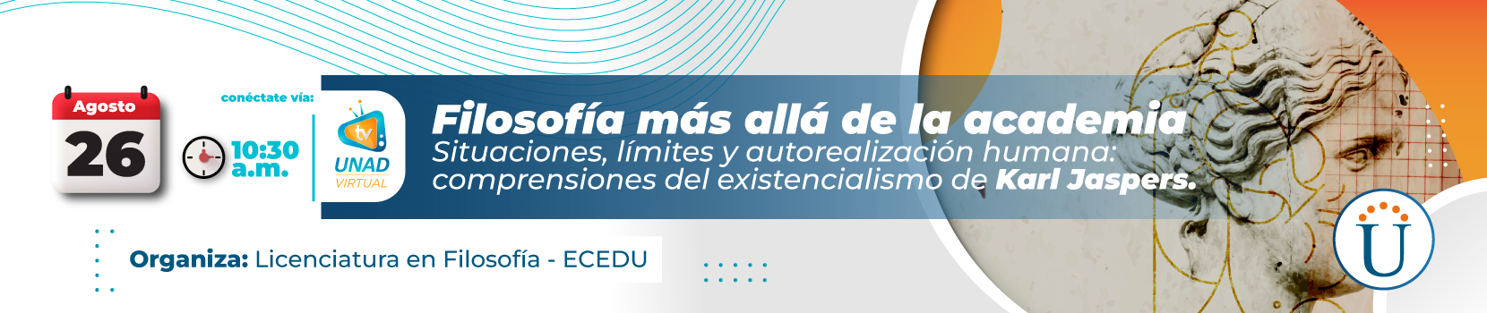 Espacio académico para que los estudiantes, egresados y docentes de la ECEDU compartan alrededor del existencialismo de Karl Jaspers, como aporte al proceso de formación com licenciado en filosofía en la UNAD.