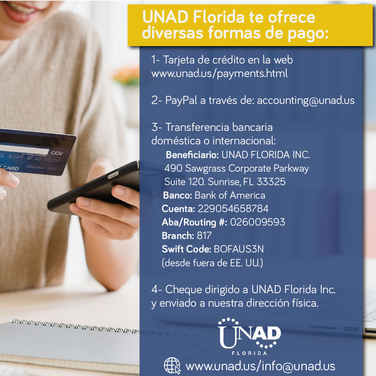 El participante en el I Congreso Internacional podrá solicitar adicionalmente y de forma voluntaria un certificado digital internacional que otorga UNAD Florida en Estados Unidos, bajo la licencia #2900 otorgada por la Comisión para la Educación Independiente del Departamento de Educación del estado de la Florida - USA. La inversión es de 25 dólares americanos y debe pagarlos directamente a la UNAD Florida por la siguiente pasarela: https://unad.us/payments.html o a través de PayPal accounting@unad.us. Cualquier información adicional sobre este proceso la puede solicitar en info@unad.us.