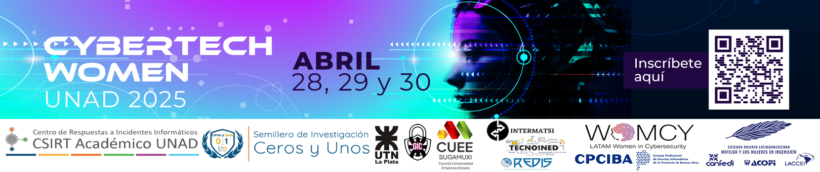 CYBERTECH WOMEN UNAD 2025, busca abordar la ciberseguridad y la tecnología a partir de la experticia, conocimiento y profesionalismo de mujeres de talla nacional e internacional que se destaquen en el sector e inspiren a otras mujeres con carreras STEM a profundizar en nuevas tendencias, avances, herramientas, técnicas, métodos, estándares, perspectivas y enfoques en las áreas asociadas. Asimismo, se pretende realizar una convocatoria para recepción de ponencias y póster de las diferentes instituciones educativas de educación superior y semilleros de investigación a nivel regional, nacional e internacional a fin de fomentar la transferencia y socialización de nuevos conocimientos y de igual forma, promover espacios para fortalecer la vida académica, la vida universitaria, la promoción de los programas de formación ofertados por la universidad, promover la articulación con el sector externo, gubernamental y productivo de la región.
