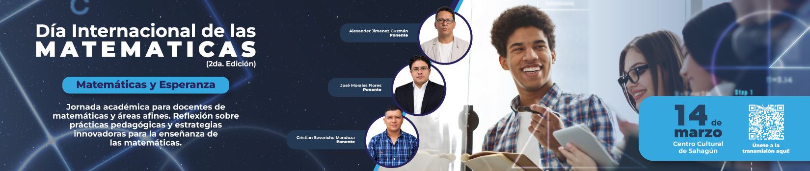 Jornada académica en el marco del Día Internacional de las Matemáticas 2026, cuyo lema es “Mathematics and Hope / Matemáticas y esperanza”, orientada a docentes de matemáticas y áreas afines. El evento busca generar un espacio de reflexión y diálogo pedagógico sobre las prácticas de enseñanza de las matemáticas, destacando su papel en la comprensión del mundo y en la construcción de un futuro más esperanzador, mediante conferencias, conversatorios y experiencias formativas apoyadas en estrategias y recursos didácticos innovadores.