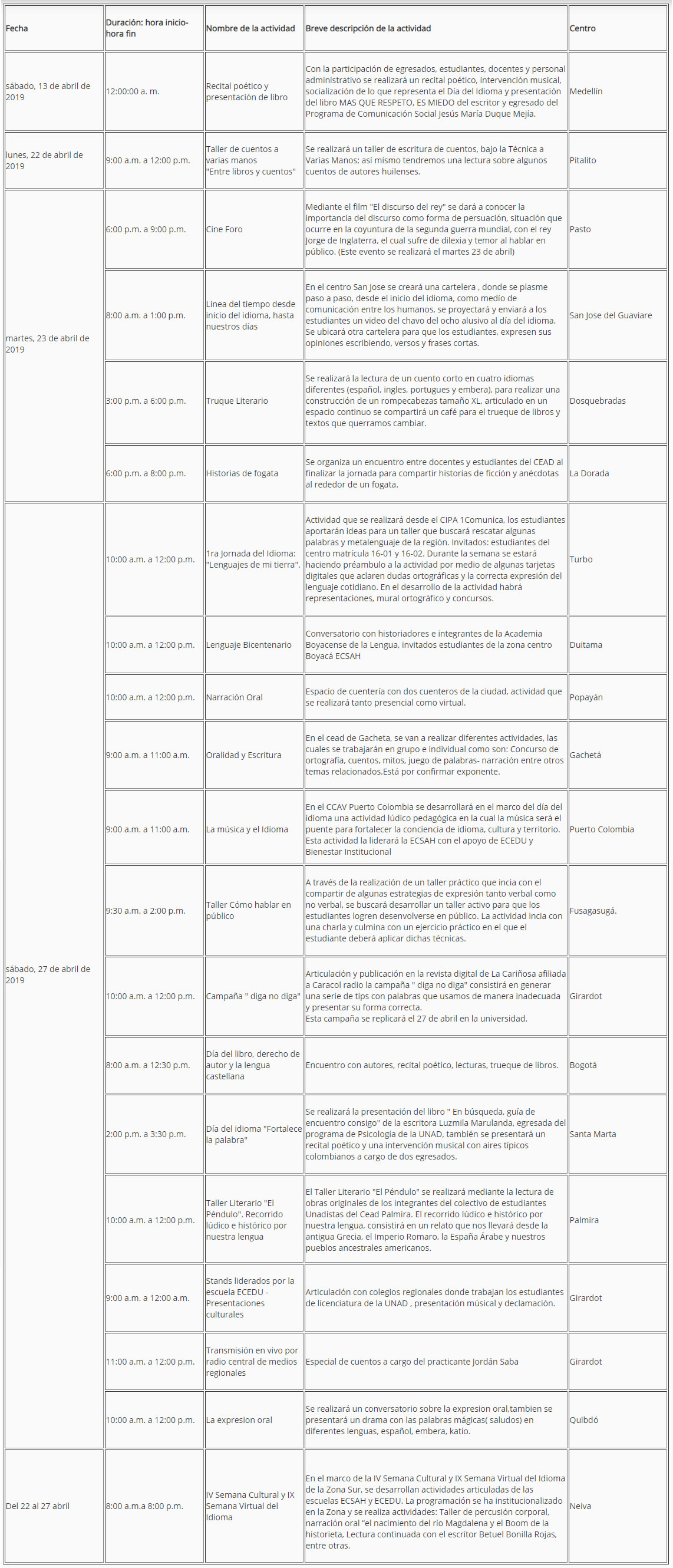 La Escuela de Ciencias Sociales, Artes y Humanidades y la Escuela de Ciencias de la Educación, lo invitan a participar en los diferentes eventos* programados con motivo de la celebración del Día del Idioma.