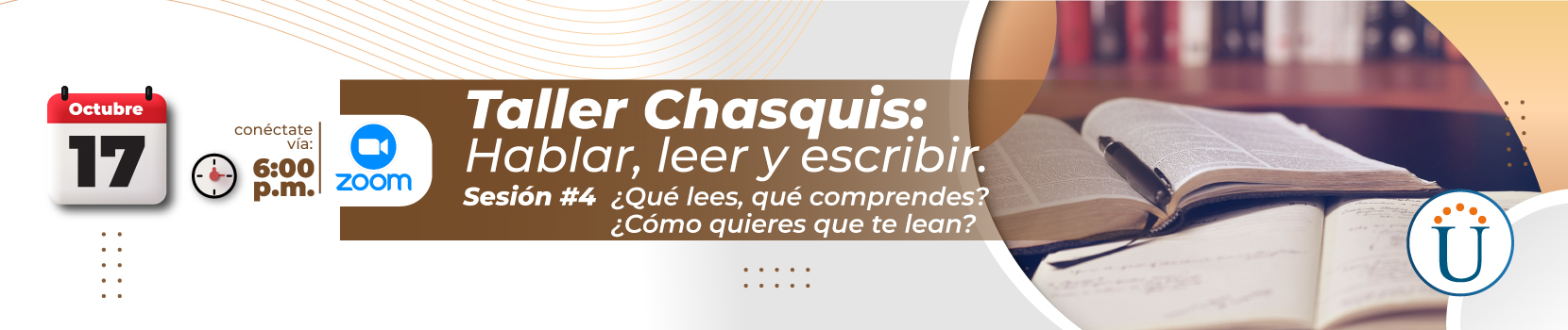 Dando respuesta a la necesidad de proponer y promover espacios presenciales y virtuales que posibiliten encuentros que enriquezcan y favorezcan el desarrollo de habilidades comunicativas de los estudiantes, egresados, docentes y personal administrativo de la Universidad Nacional Abierta y a Distancia –UNAD, desde la Escuela de Ciencias Sociales Artes y Humanidades ECSAH-ZCBC y bienestar integral Unadista, se da origen al Taller Chasquis: hablar, leer y escribir, que surge del proceso adelantado en semestres anteriores con los Talleres: Hablar en Público y Lectura Crítica; así como de las experiencias vividas en los B-Learnig.