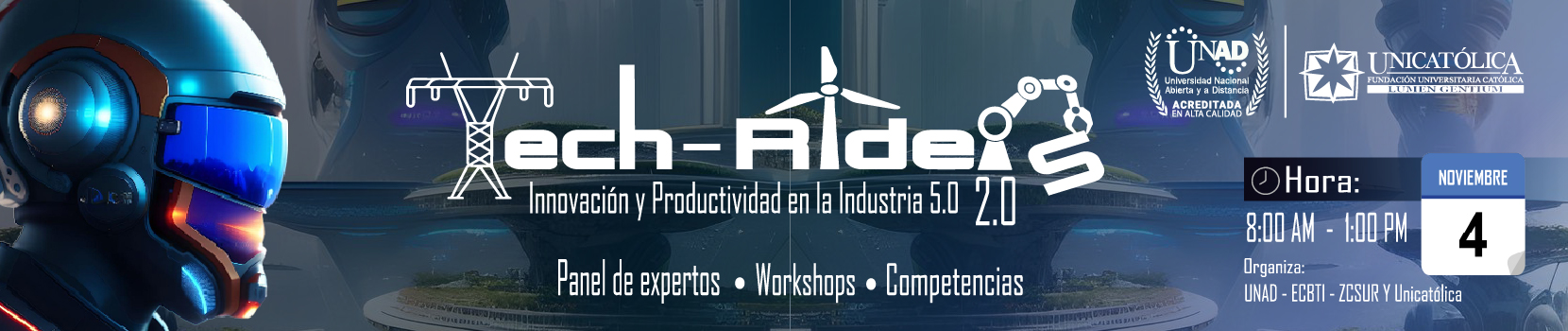 El Evento TechRiders 2da edición es una iniciativa liderada por la Cadena de Formación en Electrónica, Telecomunicaciones y Redes (ETR) y la Cadena de Formación en Industrial , con el equipo docente de la Zona Centro Sur en articulación de la institución Universidad Católica de la Ciudad de Cali. Este evento busca fortalecer la articulación entre la Academia, Sector productivo y Gobierno, promoviendo temática de la Innovación y Productividad desde áreas de interés de la Industria 5.0, enfocadas a: Redes, Robótica, Gestión de Proyectos, e Inteligencia Artificial. El evento contará con un panel de experto, workshops y colmpetencias relacionadas con los temas mencionados.